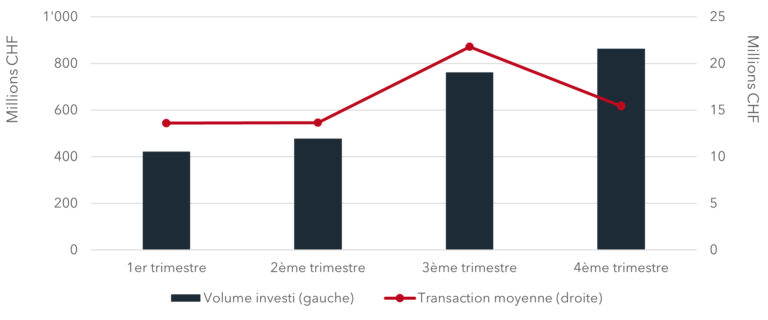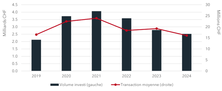 The average transaction size stands at around CHF 16 million, down from the previous two years (CHF 19 million in 2023 and CHF 18 million in 2022).